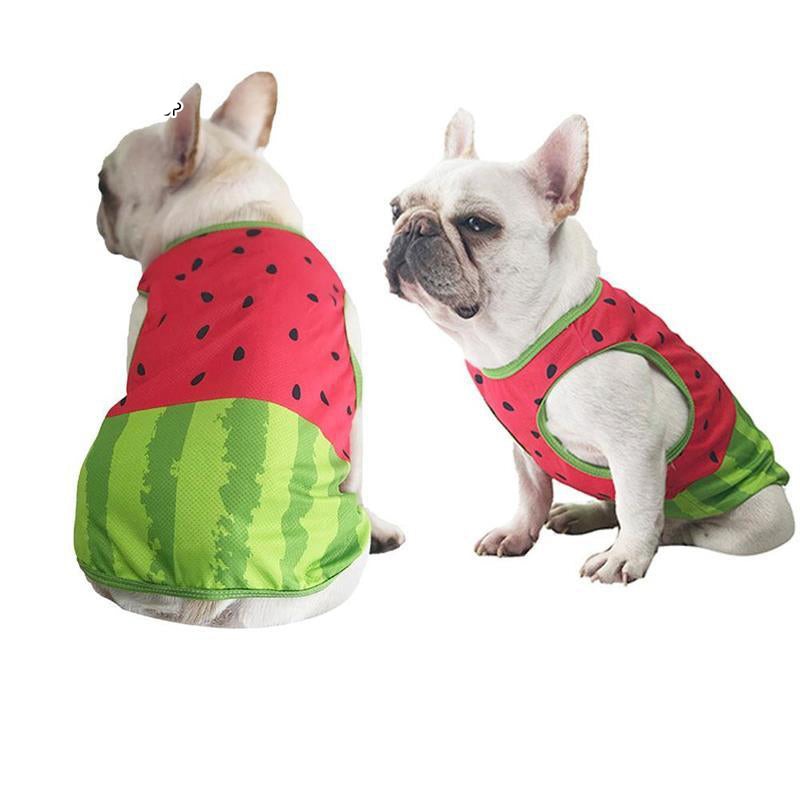 This summer vest cooling T-shirt is brand new. It is made with cold silk to give your Frenchie a better user experience. Cooling vests are high air permeability and quick-drying , keeping them in a cool and dry state. This vest specially designed for pets is soft and breathable and has an increased water absorption function and evaporation through capillary tube action. Moisten clothes slightly when it is hot. When water evaporates, the heat-absorbing effect of vaporization is used to lower the body's temperature.