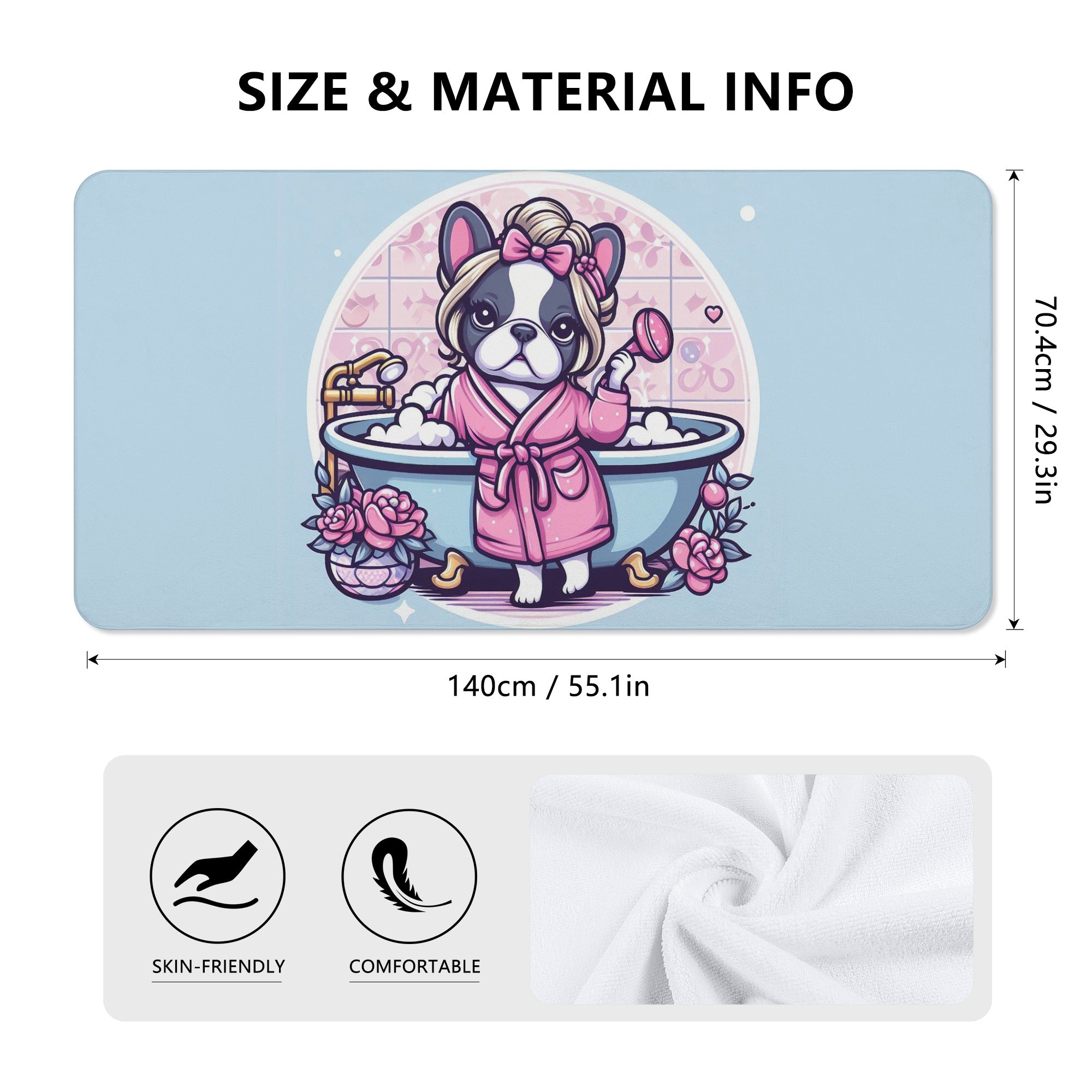 1. Vibrant Design: Brighten up your bathing experience with our colorfully designed towel, featuring adorable French Bulldog motifs. It's a fun way to showcase your love for this lovable breed.