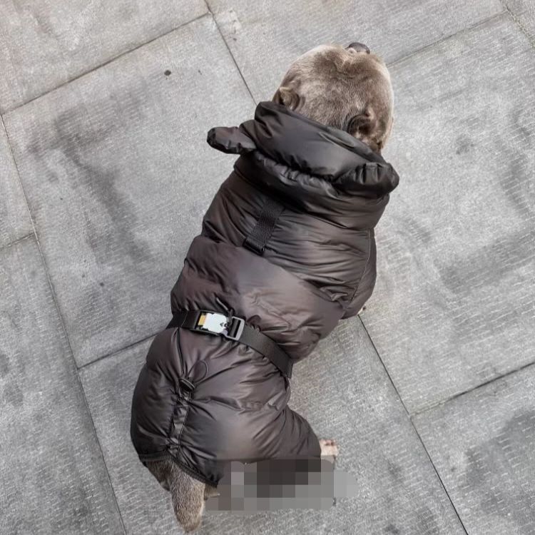 Keep your Frenchie cozy and stylish this autumn and winter with the French Bulldog Winter Cotton Jumpsuit . Designed especially for small dogs like French Bulldogs, this four-legged outfit is perfect for chilly days. Made with high-quality polyester fabric, it offers warmth, flexibility, and snug comfort for your dog.