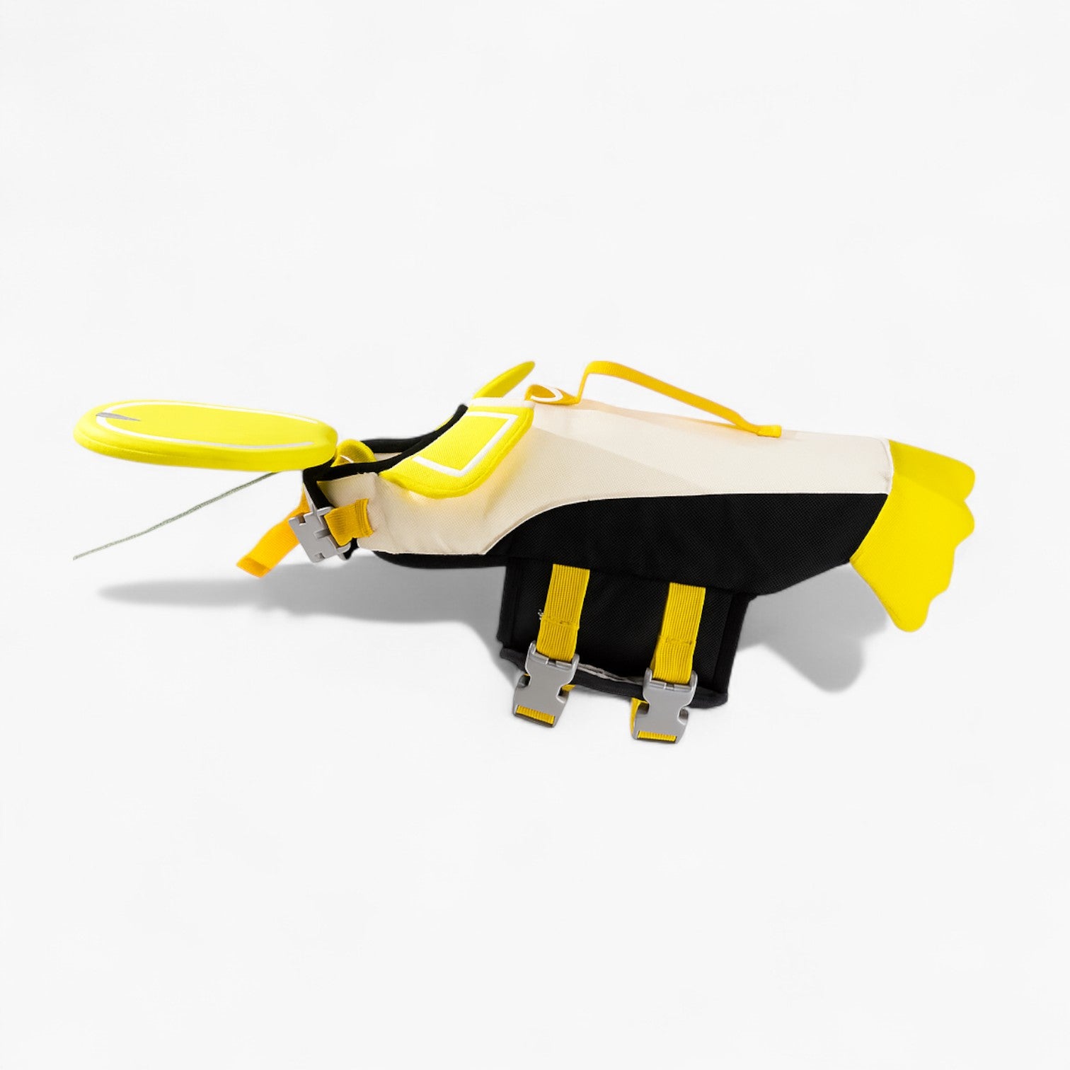 - Penguin design with a wide front float panel to keep your dog’s head above water.