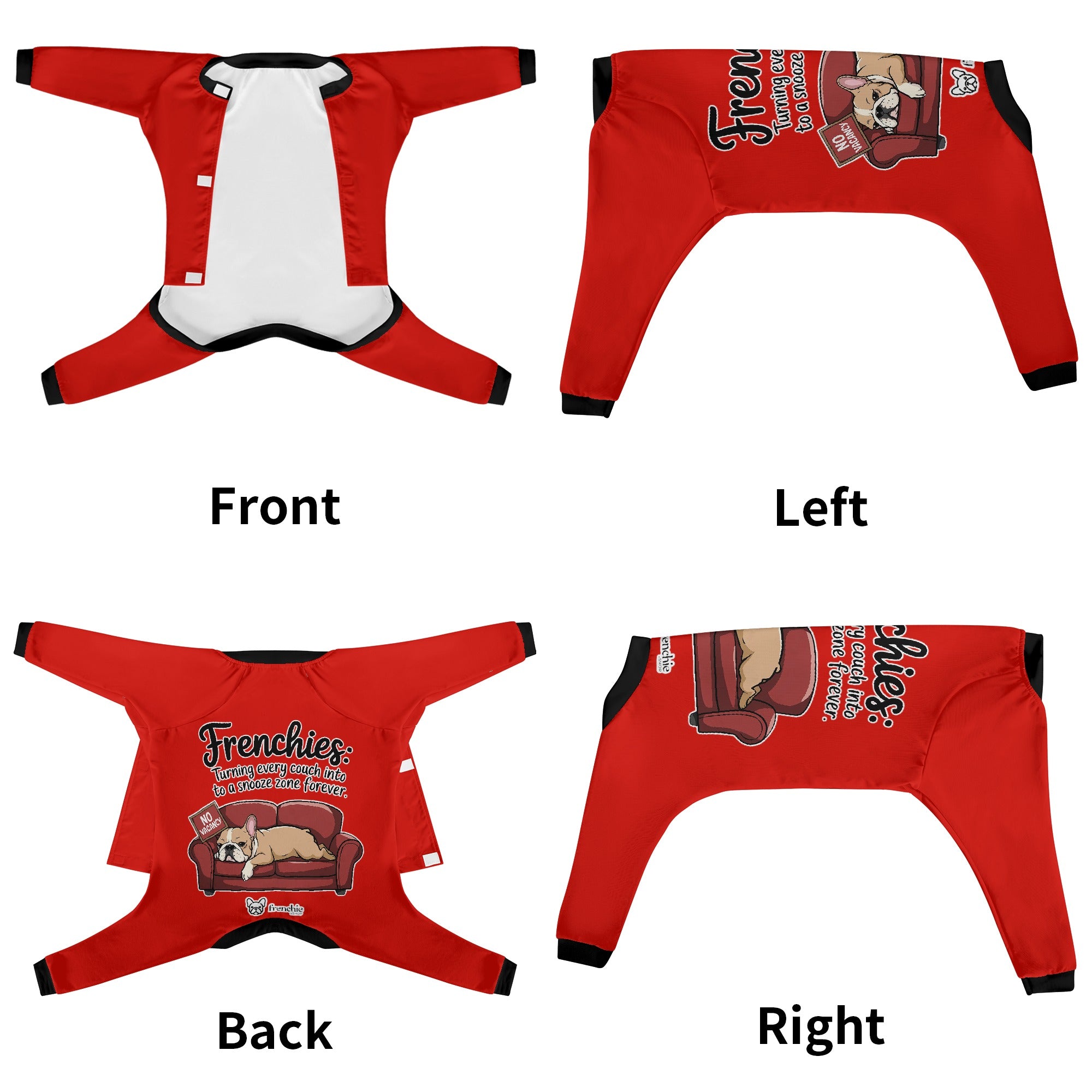 - Customizable: Add a personal touch to your Frenchie's pajamas with our customization options.