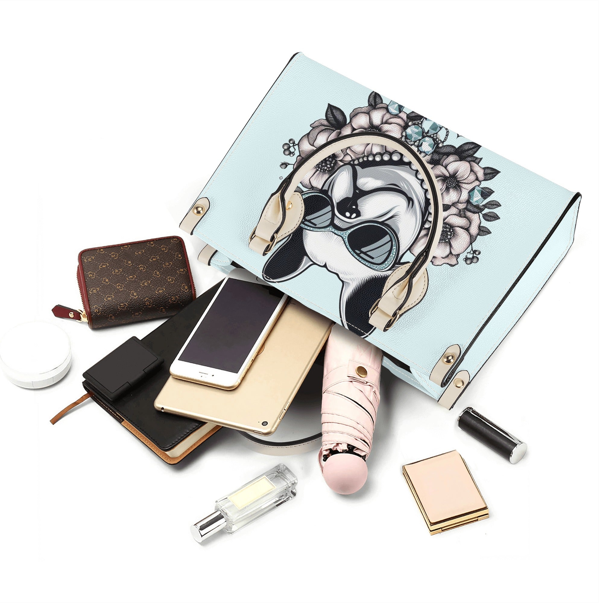 Embrace style and functionality with this unique handbag, a tribute to Frenchies and fashion alike.