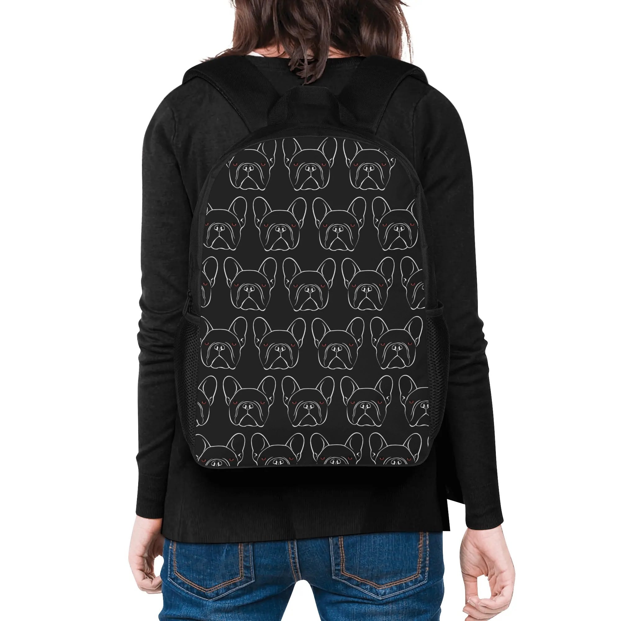 Unleash your inner French bulldog enthusiast with our 17 Inch School Backpack ?, designed to blend style with practicality. Made from robust 600D polyester ?, this backpack is built to last, standing up to the rigors of daily school routines and exciting outdoor adventures. Its reinforced and adjustable shoulder straps ensure a customized, comfortable fit, making your daily commute or weekend excursions a breeze.