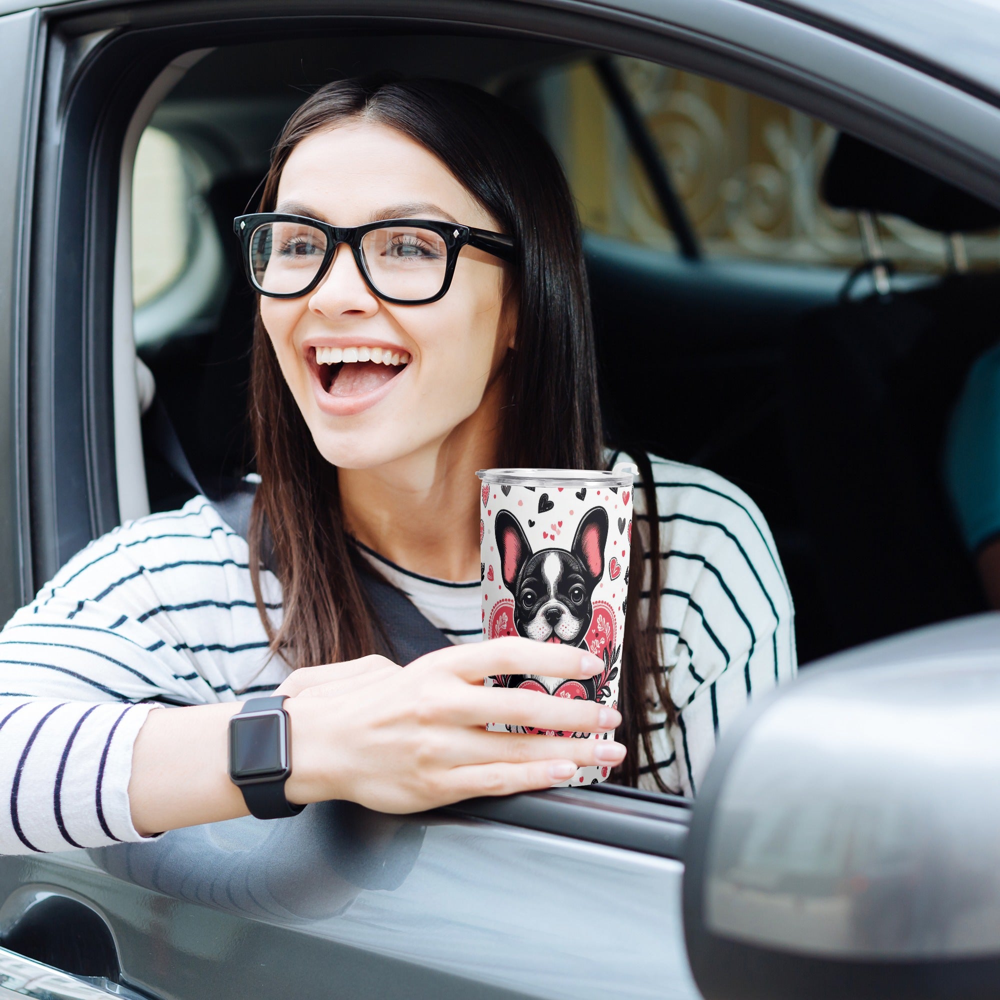 6. French Bulldog Theme: Adorned with charming French Bulldog designs, this tumbler is a must-have for anyone who adores this lovable breed. It's a subtle yet delightful way to showcase your affection for Frenchies.