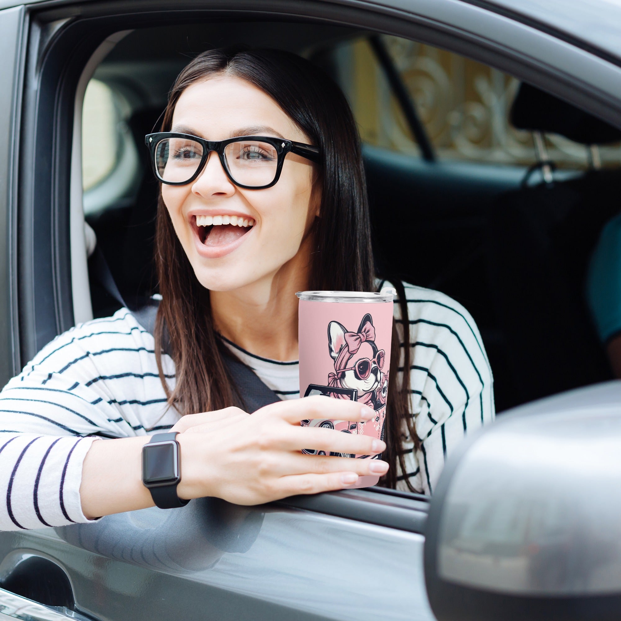 6. French Bulldog Theme: Adorned with charming French Bulldog designs, this tumbler is a must-have for anyone who adores this lovable breed. It's a subtle yet delightful way to showcase your affection for Frenchies.