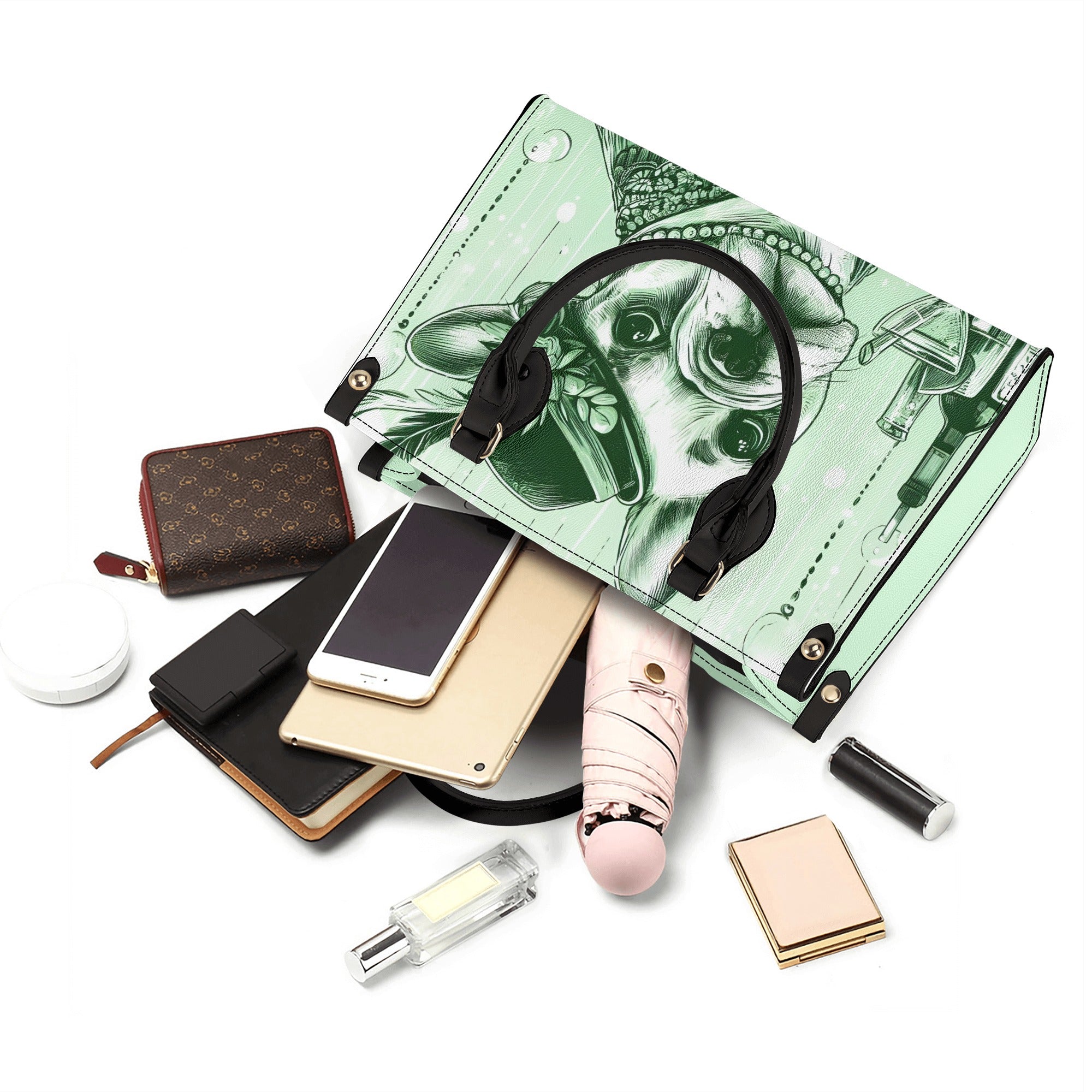 Embrace style and functionality with this unique handbag, a tribute to Frenchies and fashion alike.