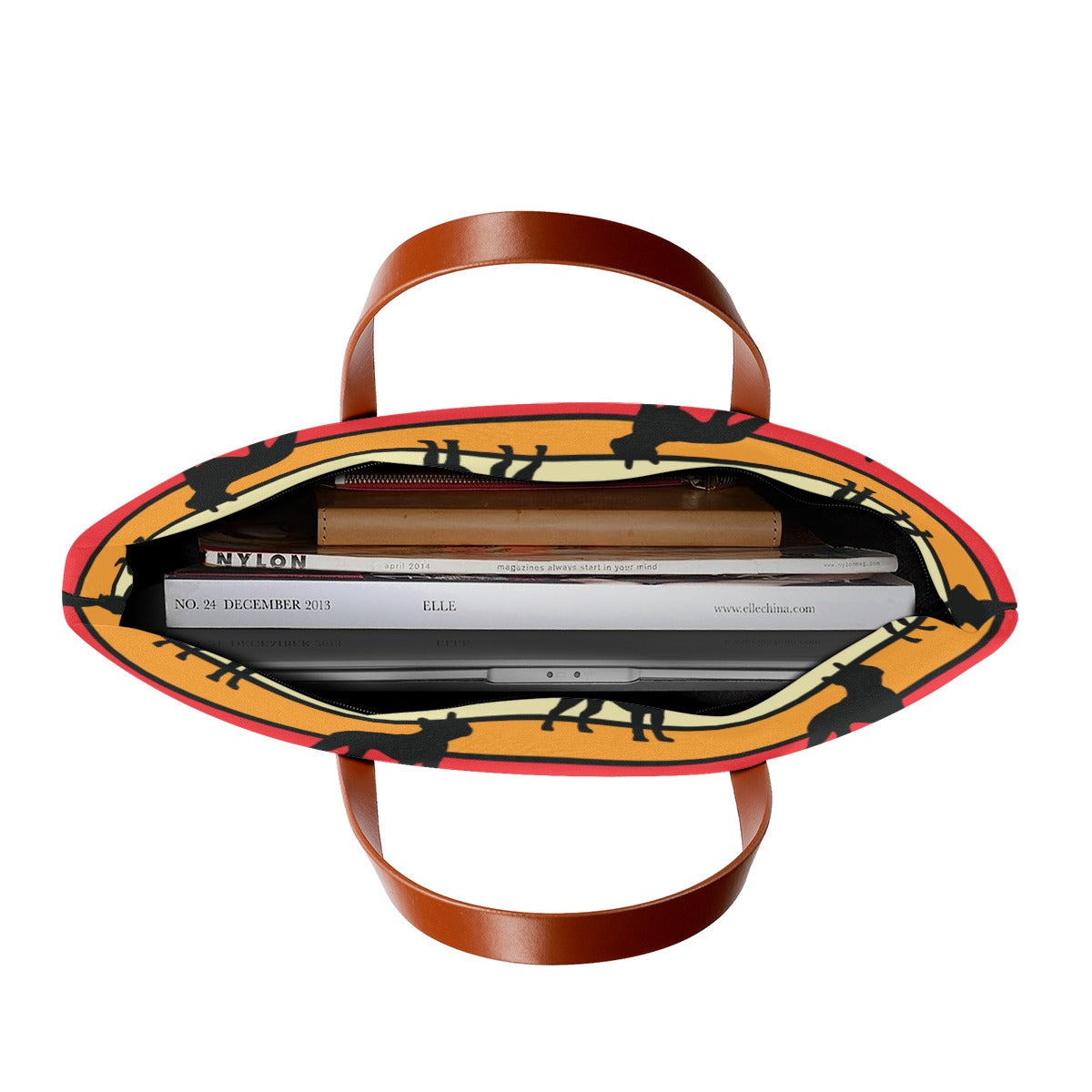 But wait, there's more! With its spacious interior , you'll have room for everything you need and more. From your laptop to your favorite book, there's space for it all. And don't forget the sleek black zipper and lining, adding a touch of sophistication to your everyday look. ⚡
