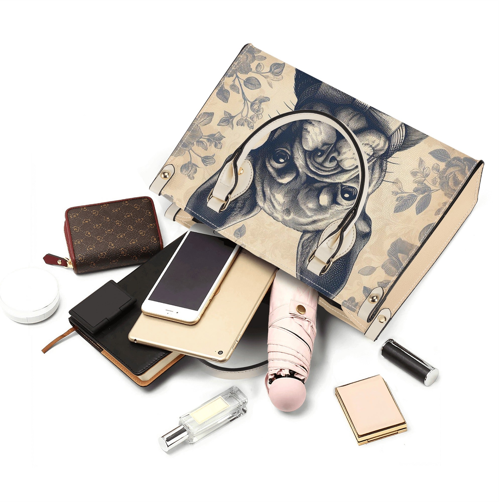 Embrace style and functionality with this unique handbag, a tribute to Frenchies and fashion alike.