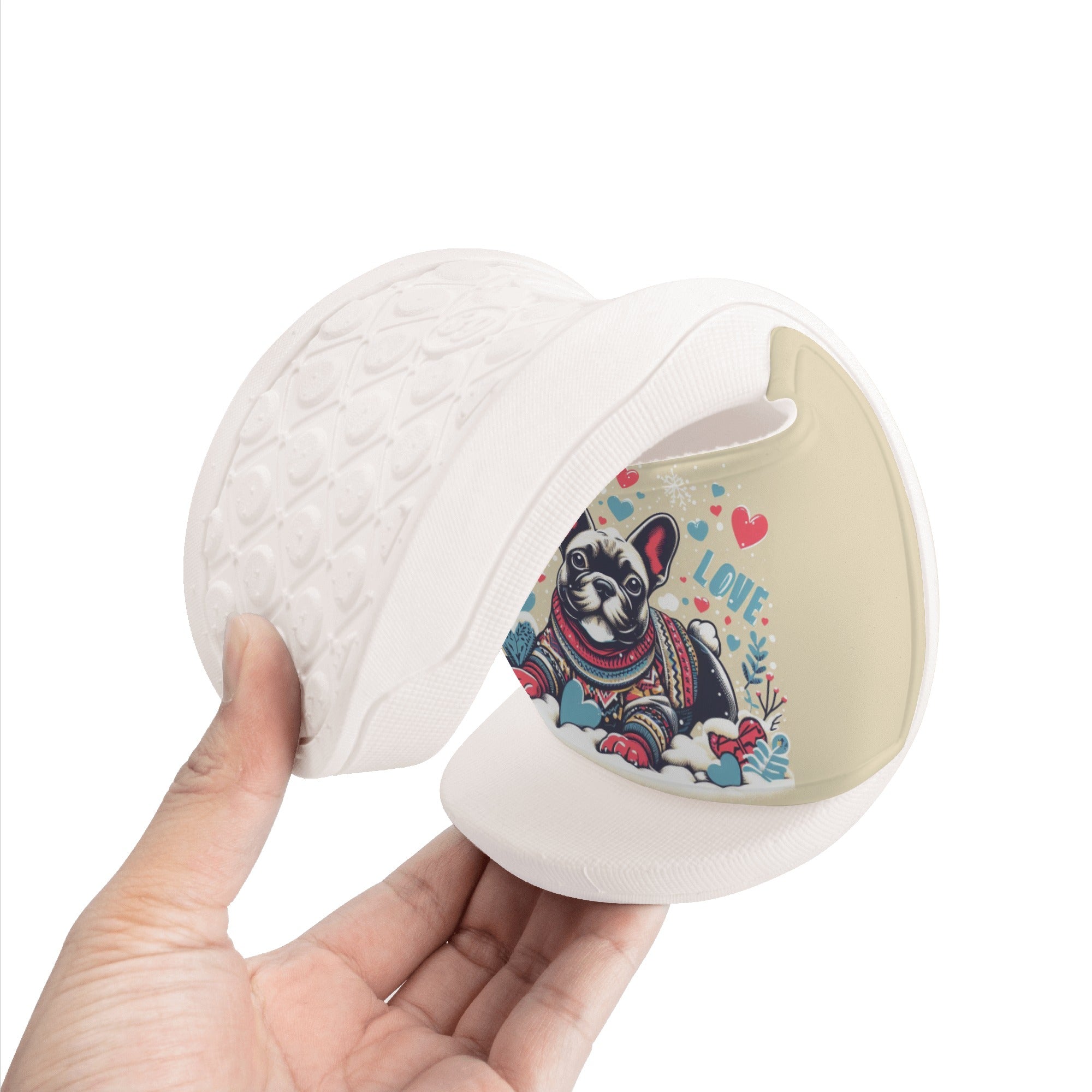 Step into the world of French Bulldog adoration with our open-toe sandals, specially designed for the Frenchie enthusiast in you. These one-piece sandals are not only easy to slip into but equally effortless to take off, ensuring you're always ready on the go.