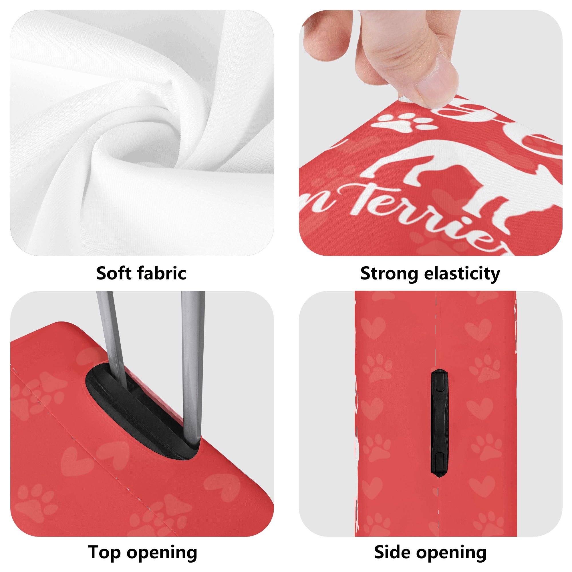 - The case cover comes in four sizes (S-XL) that correspond to different luggage box models. It has a unique opening on top for the telescopic handle and carry handle, and zippers on both sides for the side handles. This makes it easy to load and unload your luggage without removing the case cover.