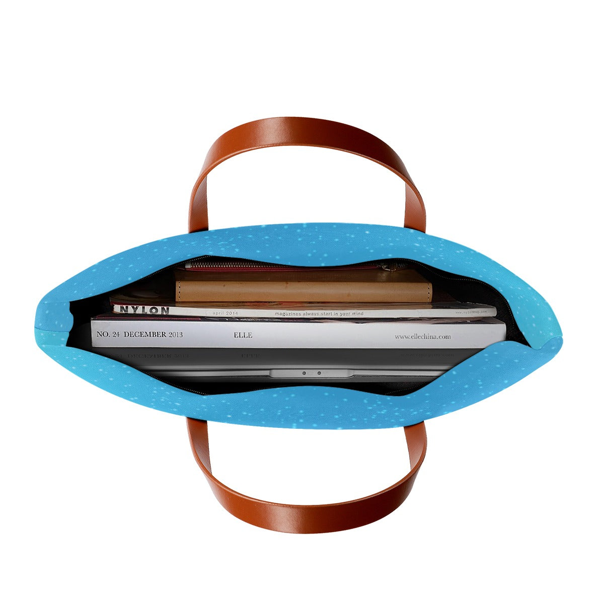 But wait, there's more! With its spacious interior , you'll have room for everything you need and more. From your laptop to your favorite book, there's space for it all. And don't forget the sleek black zipper and lining, adding a touch of sophistication to your everyday look. ⚡